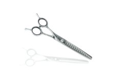 毛量の多い箇所のボリューム調整にも、顔周りなどの仕上げなどの細かい作業もオールマイティに使えるセニングシザー。