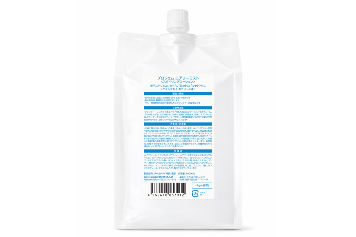 ●シャンプー/コンディショナー後、タオルドライをしてからエアリーミストをスプレーして、ブローで仕上げをしてください。